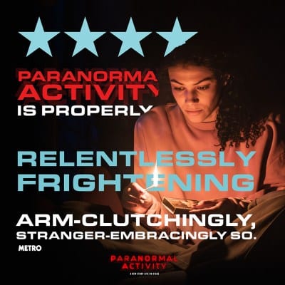 Age Gudiance: 15+ Paranormal Activity features loud noises, sudden darkness, blood and gore with references to mental health.