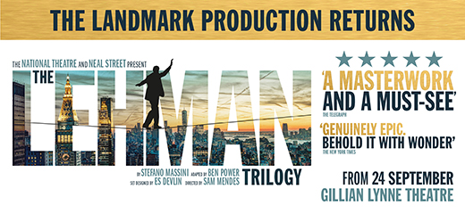 The landmark National Theatre and Neal Street production of The Lehman Trilogy, directed by Academy Award®, Tony Award®, and Golden Globe winner Sam Mendes, returns to the Gillian Lynne Theatre for a strictly limited encore season this autumn. Hailed by The New York Times as 'a genuinely epic production', The Lehman Trilogy is a sweeping story of a family spanning generations and a company that changed the world.
